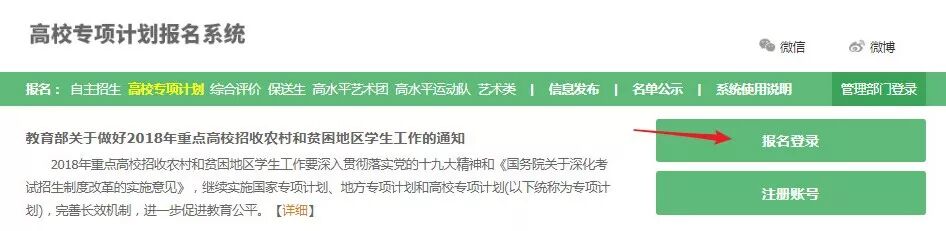 ▲ 高校专项计划报名系统登陆页