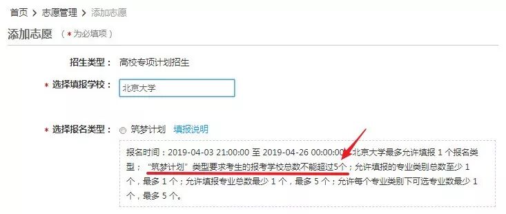 ▲ 北大筑梦计划限报要求